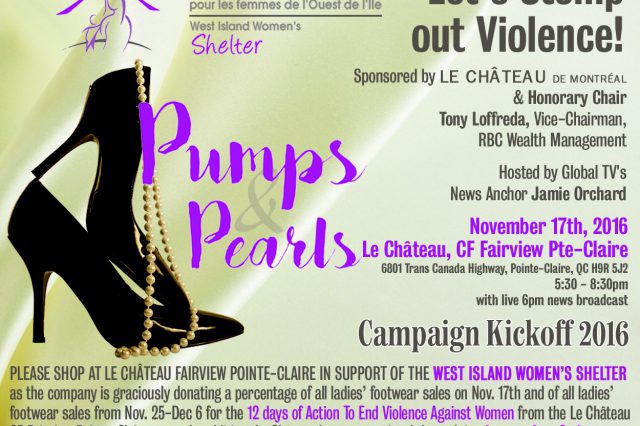 Please shop at Le Château Fairview Pointe Claire in support of the West Island Women’s Shelter as the company is graciously donating a percentage of all ladies footwear sales on November 17 and all of the ladies footwear sales from November 25 to December 6 for the “12 days of action to end violence against…